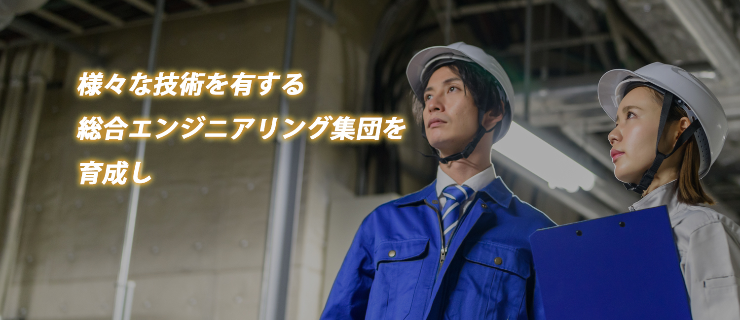 私たちはエネルギー・公共施設などのありとあらゆる社会生活を支える設備の安全、品質、情報化、高効率化、に対応するため、様々な技術を有する総合エンジニア集団を育成し、すべての人々の”豊かな生活””夢ある未来”に貢献できる企業を目指します。